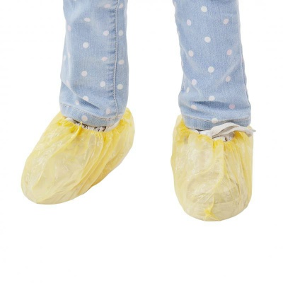 Яркие жёлтые бахилы из ПНД для защиты обуви ребенка.