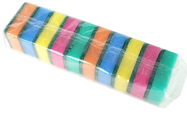 Губка состоит из двух типов волокон: мягкого и грубого. Мягкое волокно эффективно удаляет мелкие загрязнения, а грубое — стойкие и засохшие пятна.