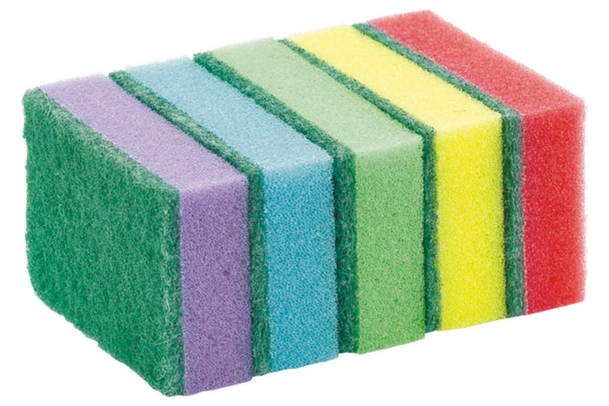 Губка для посуды с уникальной пористой структурой отлично вспенивает моющие средства, снижая их расход.
