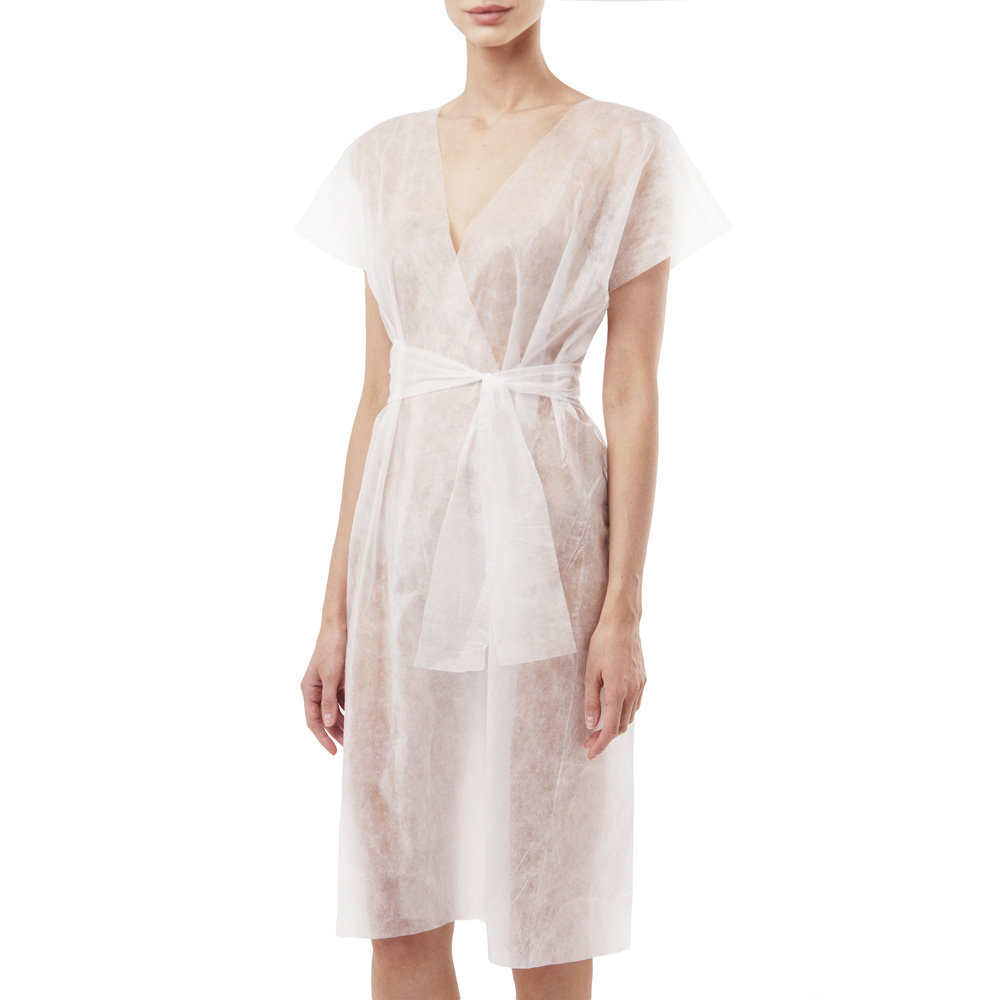 Практичный одноразовый халат белого цвета, изготовленные из высококачественного SMS-материала повышенной плотности.