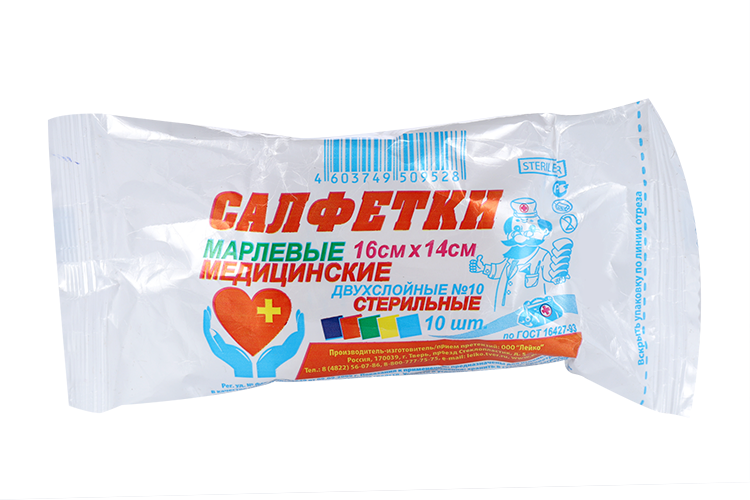 Марлевые салфетки 16х14 №10 ( 1/600) , Лейко