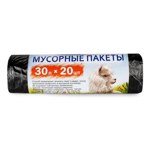 Пакет для мусора 30л 50*60 №20 черный Альпак