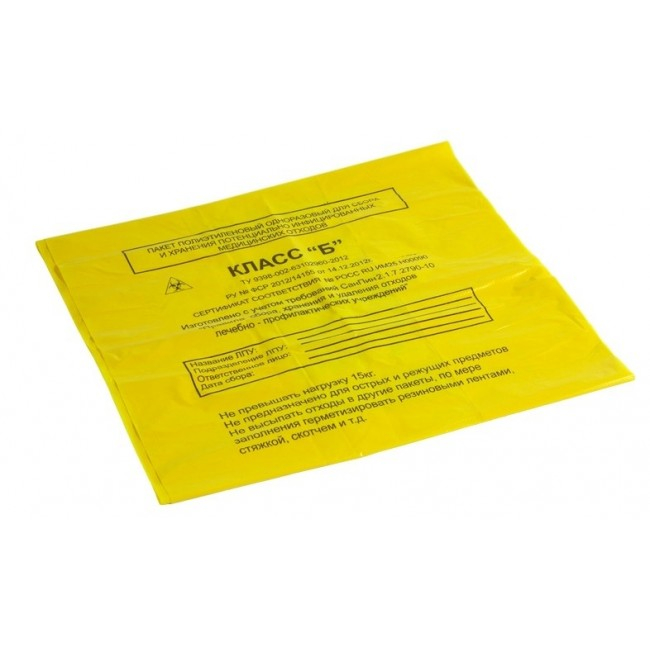 Пакет для сбора мед.отходов класса Б, 700*1100 мм, желтый, 50 шт/уп