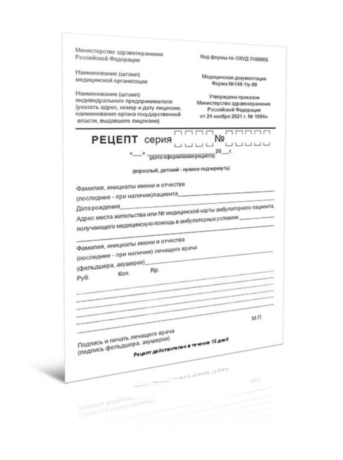 Рецептурный бланк № 148-1/У-88 (Новый)