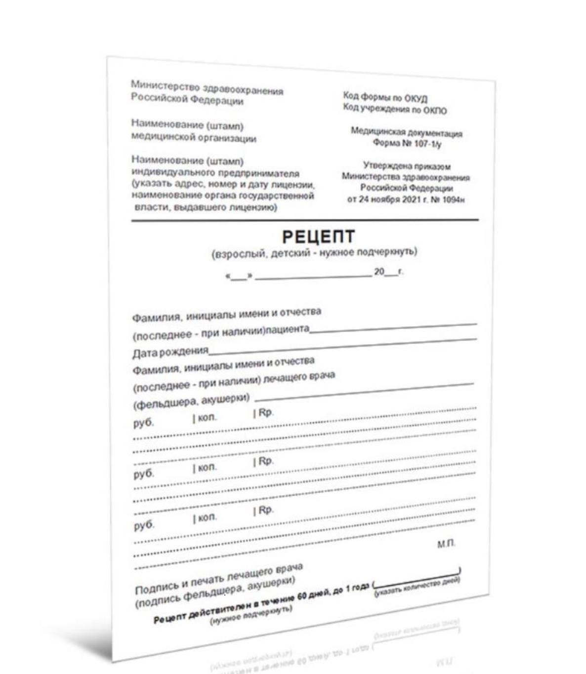 Рецепты, оформленные на бланке формы N 107-1/у, действительны в течение 60 дней с момента выдачи. Однако срок действия рецепта может быть увеличен до одного года, если лекарства предназначены для длительного лечения пациентов. Для этого требуется подпись врача и печать «Для рецептов».