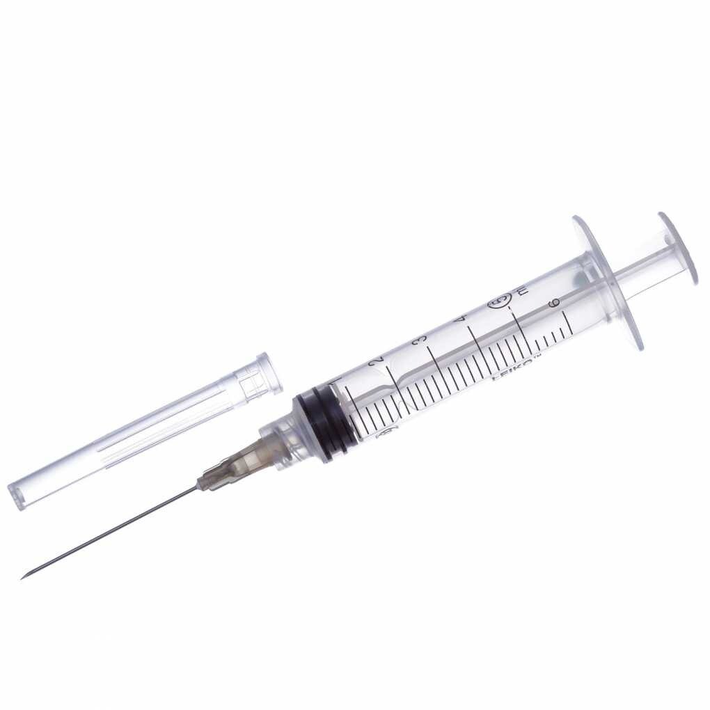 Шприц инъекционный одноразовый Luer Lock 5 мл с иглой 0.7 x 40 мм (22Gх1 1/4"), № 100